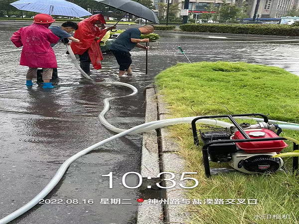 上午10點(diǎn),經(jīng)路面作業(yè)現(xiàn)場工作人員報(bào)告,在神州路與鹽瀆路交界處,最深積水達(dá)到15CM以上。應(yīng)急小分隊(duì)接到指令后,迅速駕駛車輛,運(yùn)載水泵、水管、鐵鍬等防汛物資,不到10分鐘就迅速趕到現(xiàn)場。在公司負(fù)責(zé)人劉鳳權(quán)、孫榮才等人的現(xiàn)場指揮下,搶險(xiǎn)人員立即查找造成堵塞積水的原因。經(jīng)過查找發(fā)現(xiàn),原來積水處只有一個(gè)下水道,無法快速排水。劉鳳權(quán)當(dāng)機(jī)立斷,指揮搶險(xiǎn)人員立即撬開附近窨井蓋,把水管放進(jìn)窨井,發(fā)動(dòng)水泵,往不遠(yuǎn)處的雨水井排水。這時(shí)雨越下越大,風(fēng)越刮越猛,搶險(xiǎn)隊(duì)員們冒著狂風(fēng)暴雨,不畏雷鳴電閃,齊心協(xié)力清理積水,有的發(fā)動(dòng)水泵梳理管道;有的用大掃帚清掃路面積水;有的清理積水中的垃圾雜物……隊(duì)員各司其職,分工合作,在時(shí)間緊迫、環(huán)境惡劣的情況下盡力完成排水作業(yè),經(jīng)過緊急搶排,道路恢復(fù)了通暢。
